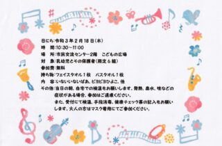 本日(1/5)より交流センターも通常の開館となりました。 こどもの広場もコロナウイルス感染拡大を防ぐために時間や人数制限 をしており、ご迷惑をおかけすることもありますが感染対策へのご協力をお願い致します。 利用時間 午前 […]