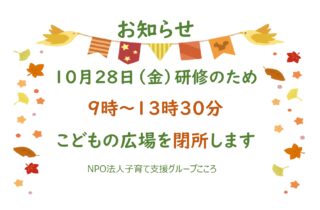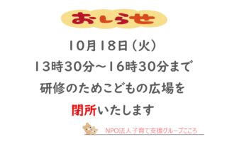 急なお知らせで申し訳ありません。 本日の『えいごであそぼう!』は先生の都合でお休みとなります。 次回のえいごであそぼう!は11月24日(木)です。