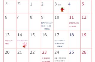 1年でいちばん寒さの厳しい時期になりました。 朝、お布団から出るまで時間がかかります… みなさんはどうですか?? 朝の冷たい空気を入れ、体をしゃきっとさせて、早起きを心がけたいものですね。 2月の『親子でリトミック』・『 […]