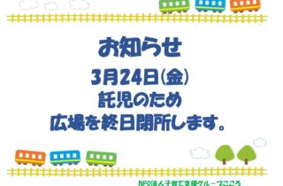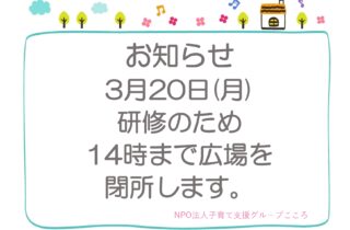 3月21日㈬ 祝日のため こどもの広場を閉所します。 ご迷惑おかけいたします。
