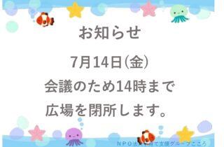 7/14㈮会議のため14時まで閉所します。 ご迷惑をおかけいたします。