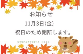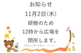 ファミサポ通信に掲載していませんでしたが11月2日㈭閉所します。