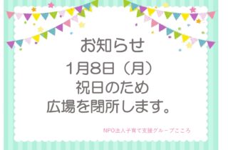 急なご連絡になり申し訳ありません。 本日、(1/23)12時より職員不在のため 閉所します。 明日、遊びに来るのを楽しみにしております。