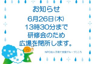 連日の閉所でご迷惑をおかけします。 紫陽花の花が色づき、雨にぬれる風景も美しく感じられる季節となりました。 6月は梅雨の訪れとともに室内で過ごす時間も増えてまいりますが、雨の音や傘の模様など季節ならではの自然の変化を楽し […]