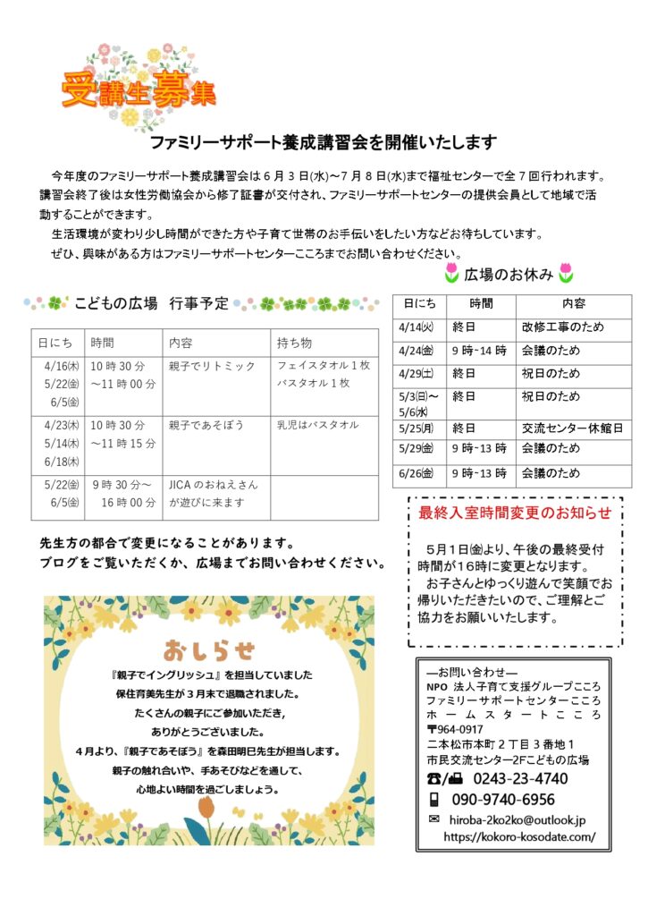 ファミサポ通信 春号 できました